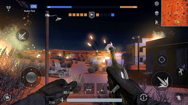 2、逼真的特效加持,让你感受一个重现战火纷飞的前线战场。
