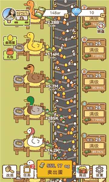 3、当你的生产线不能满足你的时候就要开设更多的生产线,加大鸭子的种类,成为这里的鸭蛋之王。