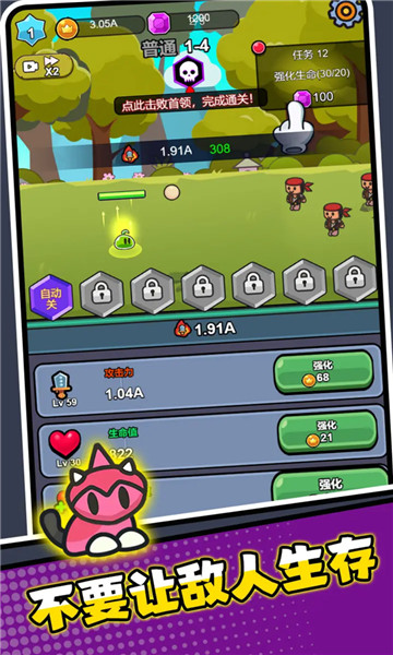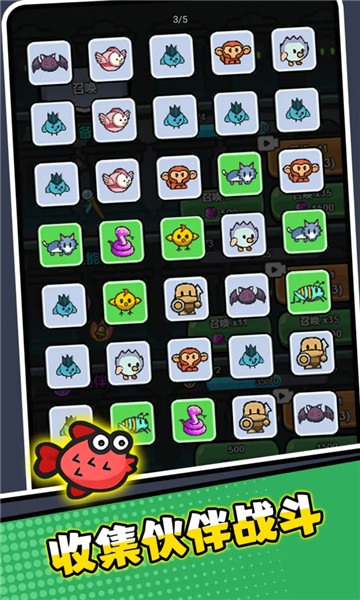2、收集各式各样的伙伴来进行战斗,消灭场上的敌人,赢得最终的胜利。