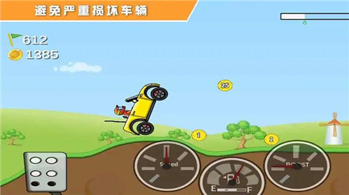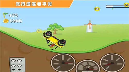 1、玩家需要控制好车辆的平衡和速度,每一关的地形都是不同的。