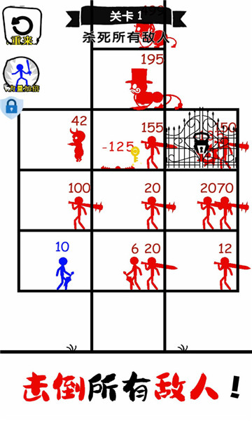 下载无敌小勇士带来一场十分烧脑有趣的休闲闯关类游戏,玩家将在这里迎接各式各样的挑战,通过不断的战斗来挑战更多的对手,观察好场上的局势,移动火柴人的位置,与场上不同的敌人展开激烈战斗。