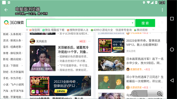 2、电脑版浏览器能够给你一个电脑端的显示界面,你可以放心来体验。