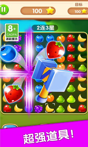 1、将相邻的水果进行消除,消除水果数量越多分数越高。