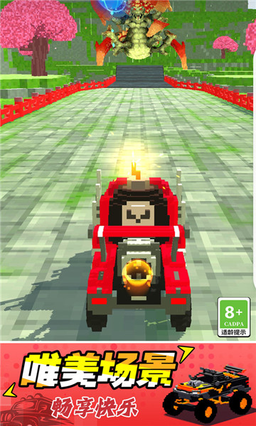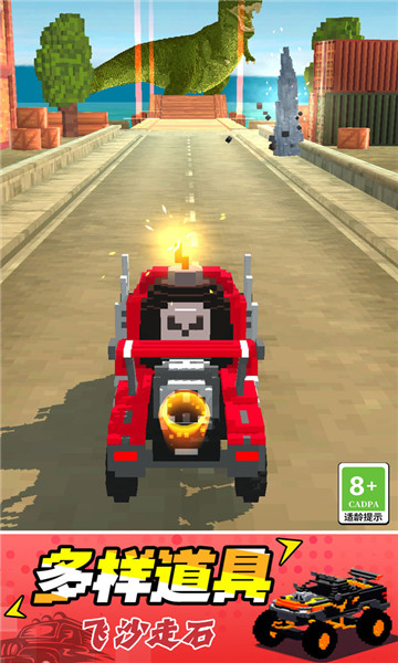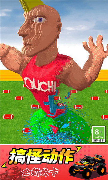 1、玩家将操控你自己的车辆来极限冲刺,随意撞向破坏各种巨型物体即可。