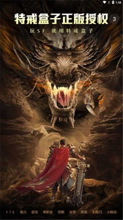 下载特戒盒子最新版本下载安装手机是传奇手游下载平台,提供丰富的传奇类武侠游戏。用户可以轻松下载并立即体验各种传奇游戏,无需注册或下载,直接开启游戏畅玩。特戒盒子下载内有多种版本的传奇游戏,同时,特戒盒子还提供丰富的游戏攻略和福利,并持续更新,确保玩家时刻享受最新的游戏体验。