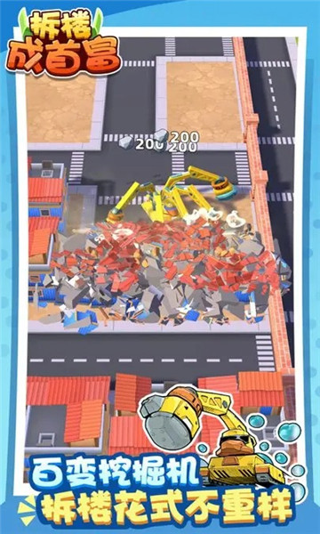下载拆楼成首富在这里感受轻松愉快的模拟经营体验,轻松休闲的游戏内容和玩法,玩家需要操控挖掘机在这里完成各项拆除的任务。整个过程非常的爽快,努力通过挖掘拆除来成为业界的首富。