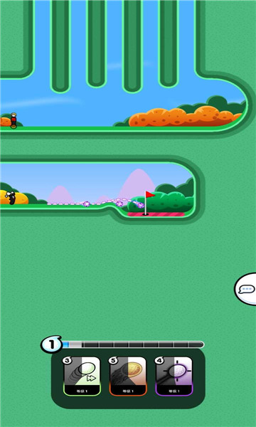 1、在这里打出闪电般的高尔夫,控制好力度和角度,顺利到达最终的洞。