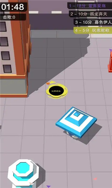 2、不断移动来吞噬掉更多的物品,让自己的分数蹭蹭蹭的往上涨,顺利晋升排行榜前列。