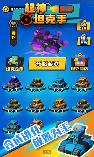 1、不断合成各种坦克,参与到激烈的对决当中,与其他强大的坦克手完成同台竞技的体验。