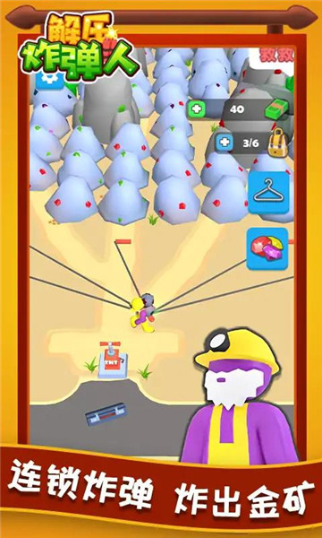 1、把这些矿石卖出去,然后用金币兑换各种类型的炸弹,接近矿井时自由放置炸药。