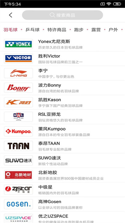2、根据需要找到对应栏目筛选自己感兴趣的运动单品。