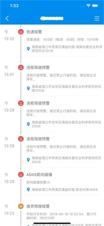 6、对驾驶员的疲劳,超速,急刹车等安全动作进行了实时的积极推送,并对其进行了及时的警告。