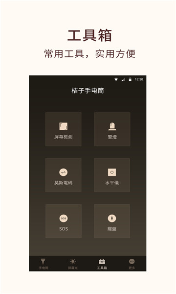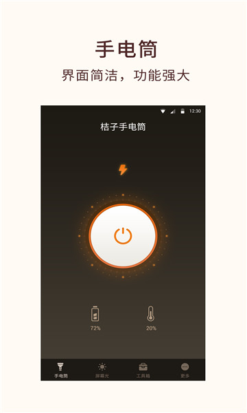 下载桔子手电筒是一款非常好用的手电筒工具软件,能够轻松快速的提供给用户帮助,方便用户在黑暗中得到一丝光明。软件还支持警灯、 SOS等各种实用工具,操作起来也非常的方便,同时还可以调整手机屏幕亮度。