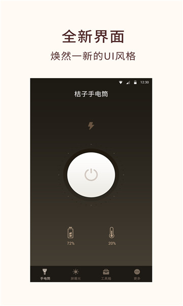 3、手机也能变成移动版的手电筒,界面风格也十分的简约。
