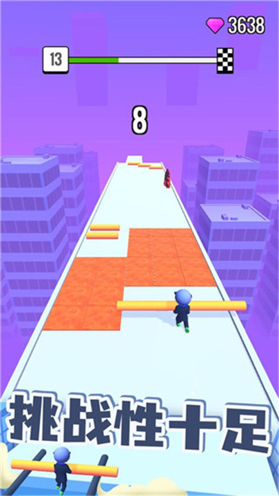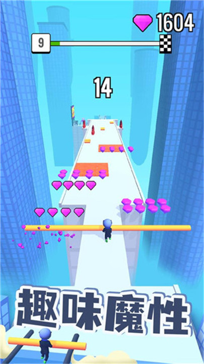 2. 一路前进别停下,让你的棍子越变越长,才能跨越各种奇葩障碍,成功冲向终点。