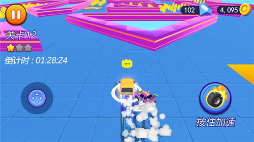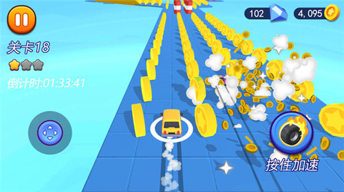 1、在规定的倒计时内玩家需要在不同的关卡赛道中完成挑战。