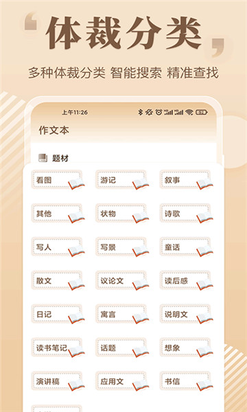 1、软件中有许多不同种类的作文模板,用户可以按照自己的需求挑选。