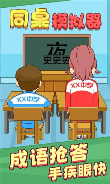 下载同桌模拟器是一款十分有趣的休闲益智类游戏,在游戏中玩家需要和你的同桌在教室里打得不可开交,同时还要躲避教师的注视。整个过程需要非常考验你的反应速度,更多有趣的闯关方式等你来解锁,尽情享受其中的乐趣。