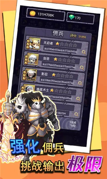 下载召唤勇士是一款轻松简单的休闲放置类游戏,游戏中玩家将扮演一名勇士,需要在这里拯救属于你的公主,在闯关的过程中,会遇到很多凶残的怪物,可以召唤你的佣兵来帮助自己,快速的应对各类挑战,获得各类资源。