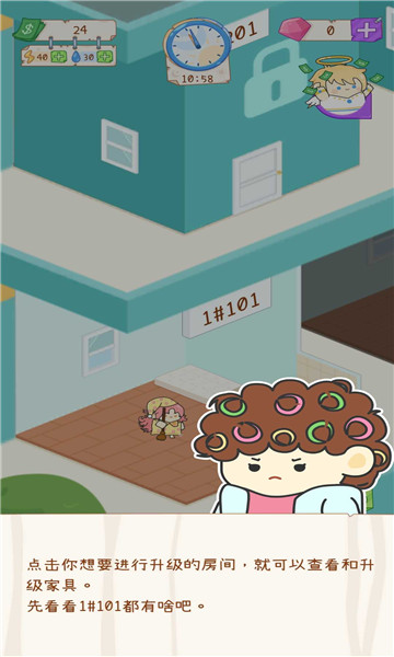 1、独特的模拟经营的玩法,在这里打造属于你的特色公寓。