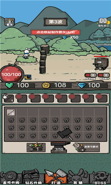 1、玩家可以打造各种武器来完成挑战,完成关卡后就能升级。