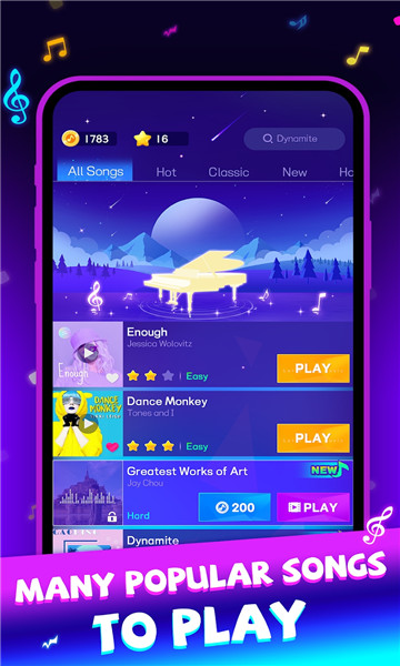 1、超丰富的钢琴曲目,让你体验各种玩法的极限挑战。