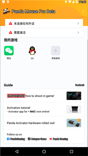 下载熊猫鼠标专业版属于一款非常好的手游辅助APP,玩家们可以很容易的利用各种外设来玩各种手游,该软件可以使手机游戏与手柄和键盘相连接,此外,该软件还可以自定义粘滞键和组合键,应用安装包很小,更符合自己的感觉,它会给你一种完全不同的游戏感受。