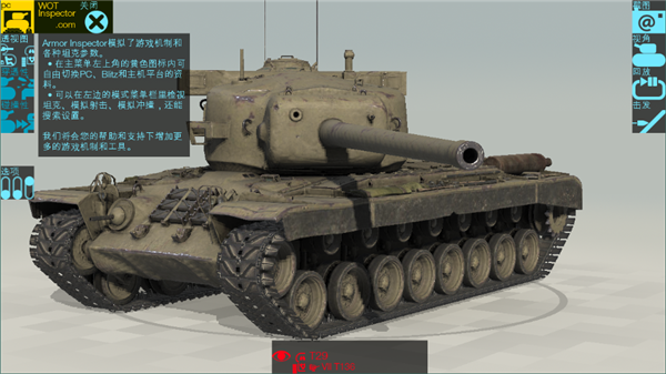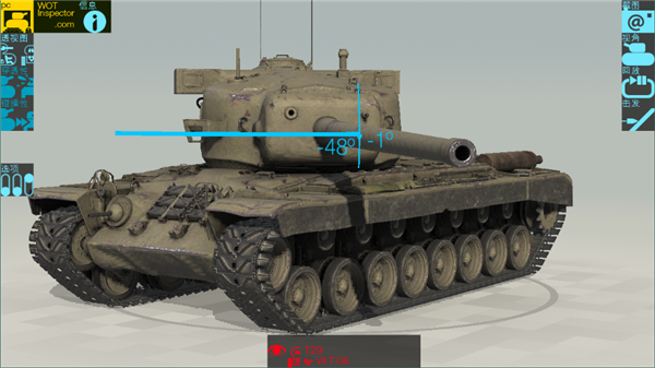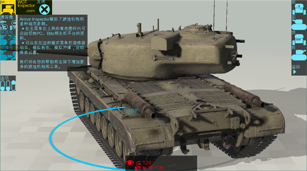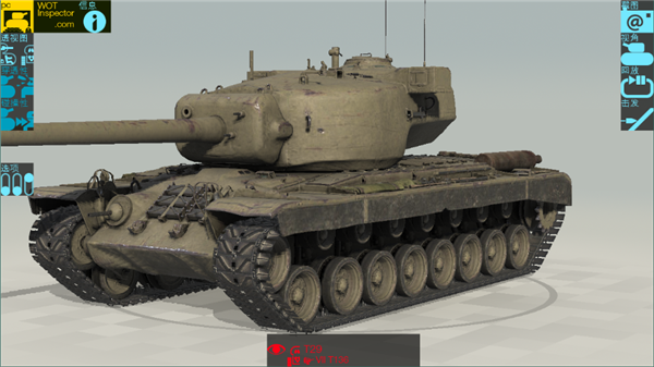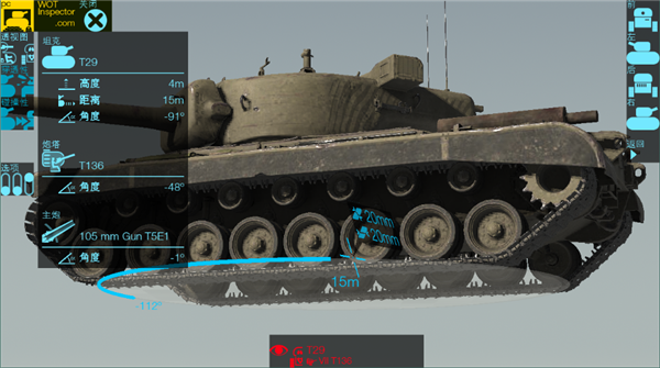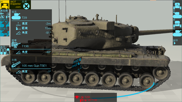 4、点击“透视”、“等效”、“碰撞”、“视角”,即可调节战车的姿态,查看战车的详细数据。