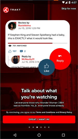 下载trakt一款专门为你设计的电影跟踪程序,可以帮助你在电影中进行跟踪,Trakt可以帮助你进行电影的跟踪和跟踪,这是一个只有你一个人的“豆瓣”,可以帮助你在每天的电影中进行观察和跟踪。