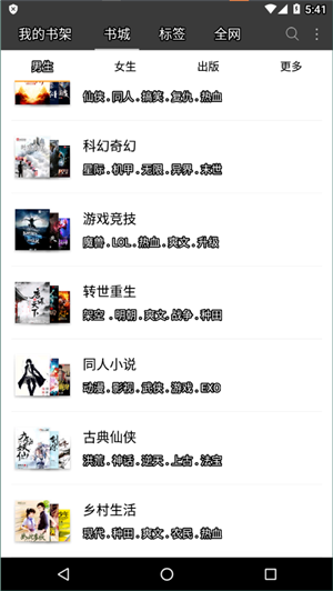 3、资源丰富,有爱情、科幻、武侠、城市、奇幻、浪漫等各种不同类型。