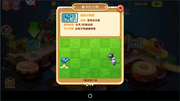 1、在地图上放置一张美味食物的防御卡,用来抵抗老鼠的攻击。