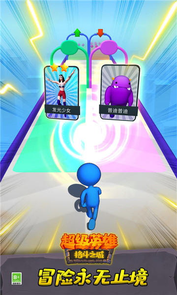 下载超级英雄格斗之城是一款将跑酷与卡牌相结合的一款休闲类游戏。同一张卡牌,可以制作出高星级的强大卡牌,在战斗中起到关键作用,也可以获得角色皮肤和卡牌皮肤,更多的游戏规则,等待着玩家去探索。