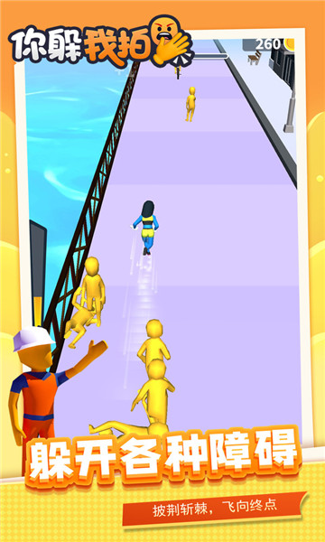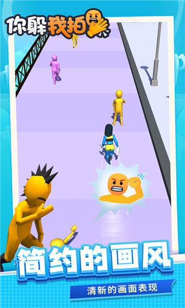 下载你躲我拍非常好玩的休闲类游戏,在这个游戏中,玩家们可以进行一次激烈而又刺|激的打脸比赛。这个游戏很好玩,就是在跑道上跑来跑去,你要是看不顺眼,就冲上去一巴掌扇过去,然后再跑回去,但是一定要注意赛道中的各种障碍。