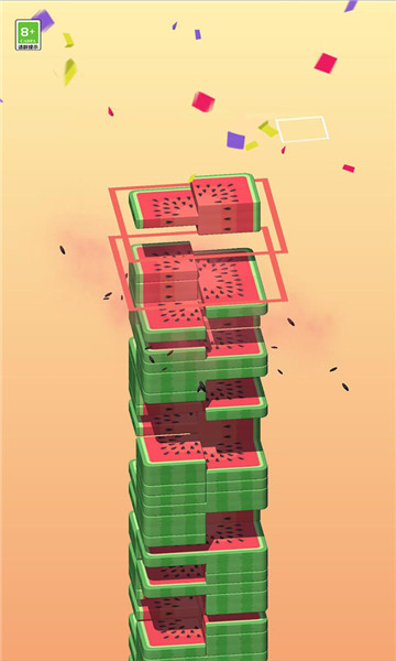 1、游戏中,玩家必须通过改变西瓜片的方位和排列方式,让它们与原来的一片瓜片重叠在一起,直到将整个一片瓜片重叠在一起,才能将所有的瓜片都移走。