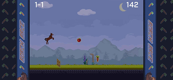 下载萝卜冲刺游戏手机版下载是横板闯关类游戏,游戏有着经典的像素画风,同时还加入了特殊玩法,玩家将在游戏中扮演巫师中杰洛特的爱马萝卜,在这片宽广的土地上永无止境的奔跑,去探寻武士宇宙的场景。在萝卜冲刺(Roach Race)安卓版下载中,玩家需要在路途中躲避狮子、乌鸦以及栅栏等障碍物,同时还要收集苹果和萝卜以获取分数。玩家在通关成功后游戏将为玩家自动解锁下一个场景地图,不同的关卡将会有不同的冒险玩法,玩家只管不断冲刺赢得胜利。