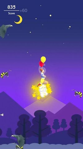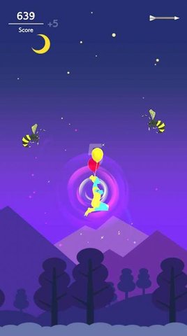 3、气球的上升和下降。在屏幕上按一下就可以操控飞起的气球,让你有更多的玩法与挑战。