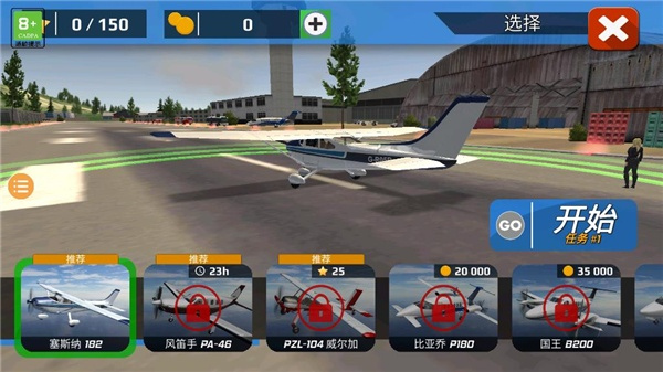 3、点击主界面中醒目的“开始”按钮,就可以接取各种飞行任务,通过完成任务可以赚取金币作为奖励。