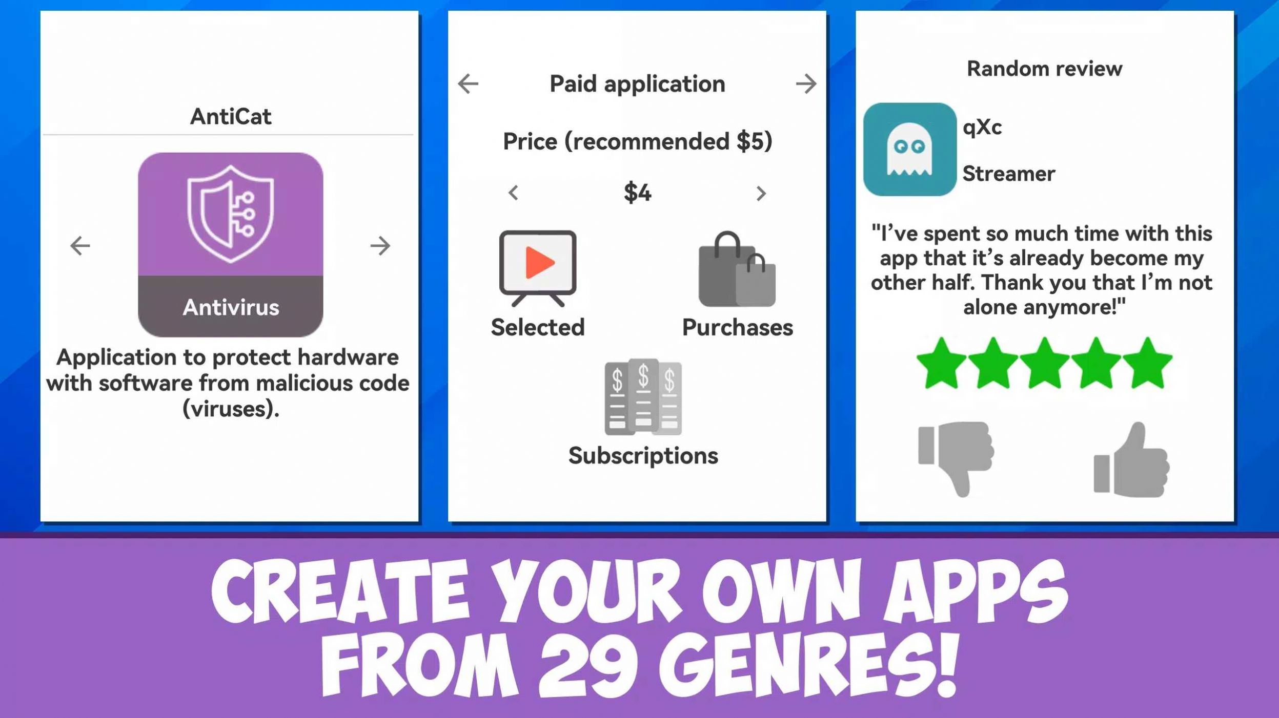 下载开发生活模拟器是一款非常有意思的模拟游戏,游戏中玩家运营着一家开发研究公司,用宣传的方法来提高这些app的知名度,这样就可以为你带来更多的流量和收入。在这个过程中你可以专注于开发游戏或者软件,还可以提高公司的知名度,而这个过程将会改变你的人生轨迹。
