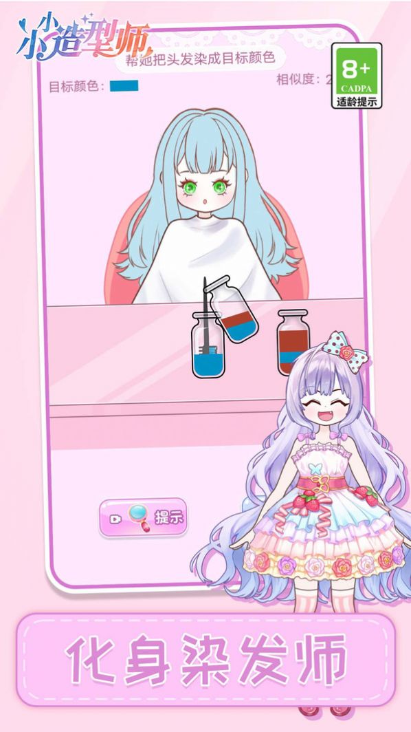 下载小小造型师是一款十分有意思的闯关休闲游戏,它给玩家们带来了一个可以尽情地玩耍的地方。玩家只需要为自己的顾客们设计最特殊的发型和化妆,这个游戏的背景设置在一家小型造型店里,里面有很多不同的工具和化妆品,还有很多其他的乐趣,你可以尽情地去体验。