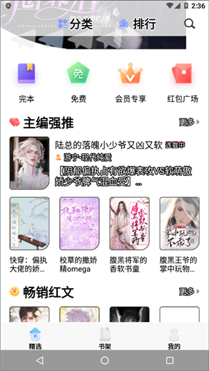 3、提供了大量的网络小说,包括各种精选榜、完结榜、更新榜、好评榜、推荐榜等等。
