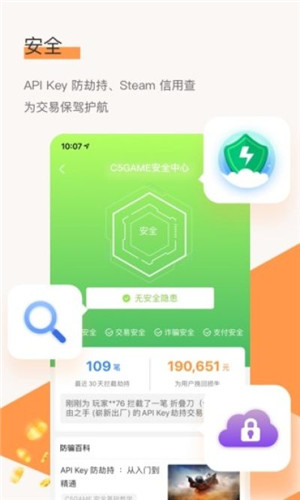 下载c5game具有很不错的交易安全,专业,经济,方便。独特的APIKey防劫持,蒸汽信用查询,蒸汽加速,三大系统,私人交易,0费用,保证你的交易安全,是很多游戏用户都在用的交易平台。