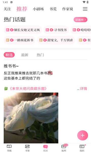 2、小说、讨论、社区等每一个细节都有,你可以根据自己的需求参与。