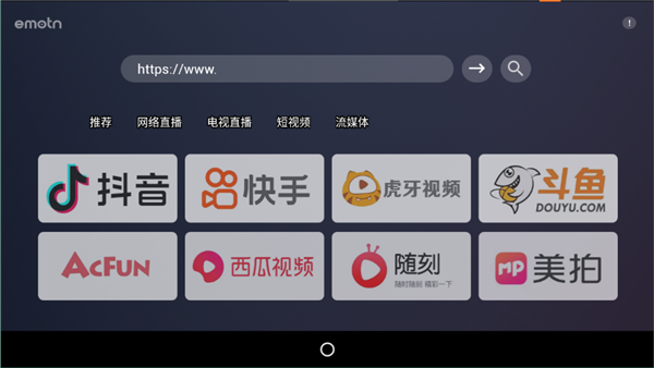 下载emotn browser tv版属于一款可以提供看小说、看视频、看新闻等各种服务的APP,不但可以让你重现清新的视觉感受,还可以提供具有智能的病毒危险拦截提示等功能。