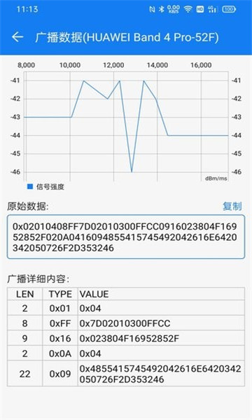 1.支持检索周期和循环检索设定,并对检索出的装置资讯(讯号强度,MAC位址,配对和连接状况,广播资料等)进行即时显示。