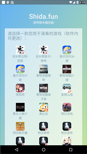下载Shida弹钢琴助理是一款可以让蛋仔派对上的玩家轻松应对钢琴演奏的手游,让玩家找到和改正自己演奏中存在的问题,还能让玩家记录下自己演奏时的曲子,让每个人都能在这个游戏中大显身手,在基本的工具服务之外,软件还提供了弹曲录音和回放功能,软件拥有各种强大的功能,让玩家能够更好的完成游戏中的挑战。
