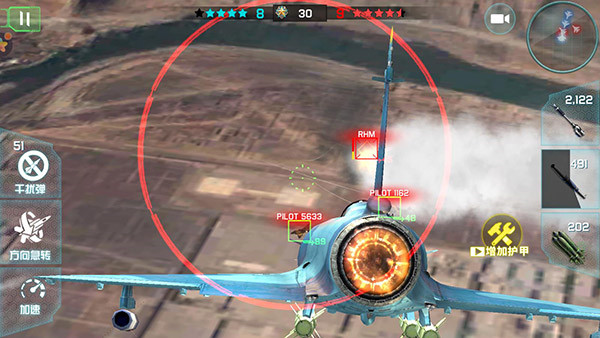 6. 锁定敌机后,点击按钮发射武器