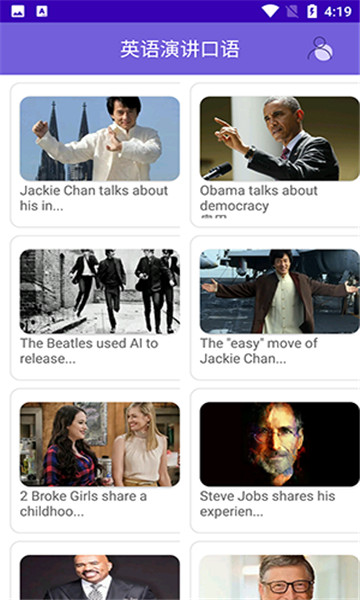 3、内容包括,TED演讲,名人演讲,热点新闻等。