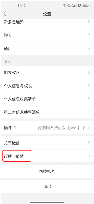 2、下滑找到【帮助与反馈】,点击进入。