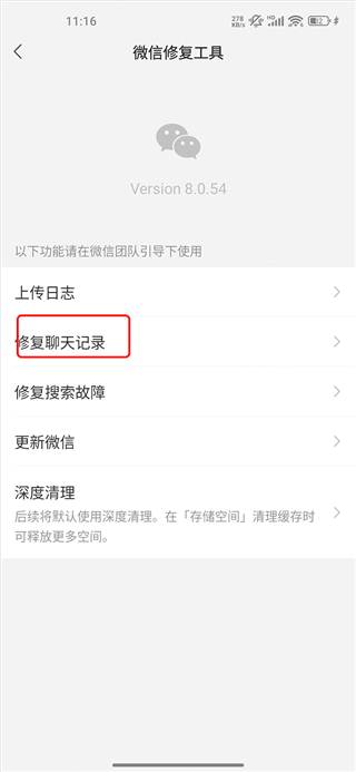 4、现在可以看到第二个是【修复聊天记录】的选项,也是点击。