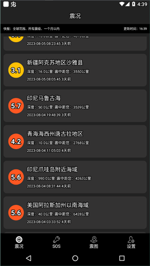 4、它是一款可以在更短的时间里为您提供世界上的地震信息的软件。
